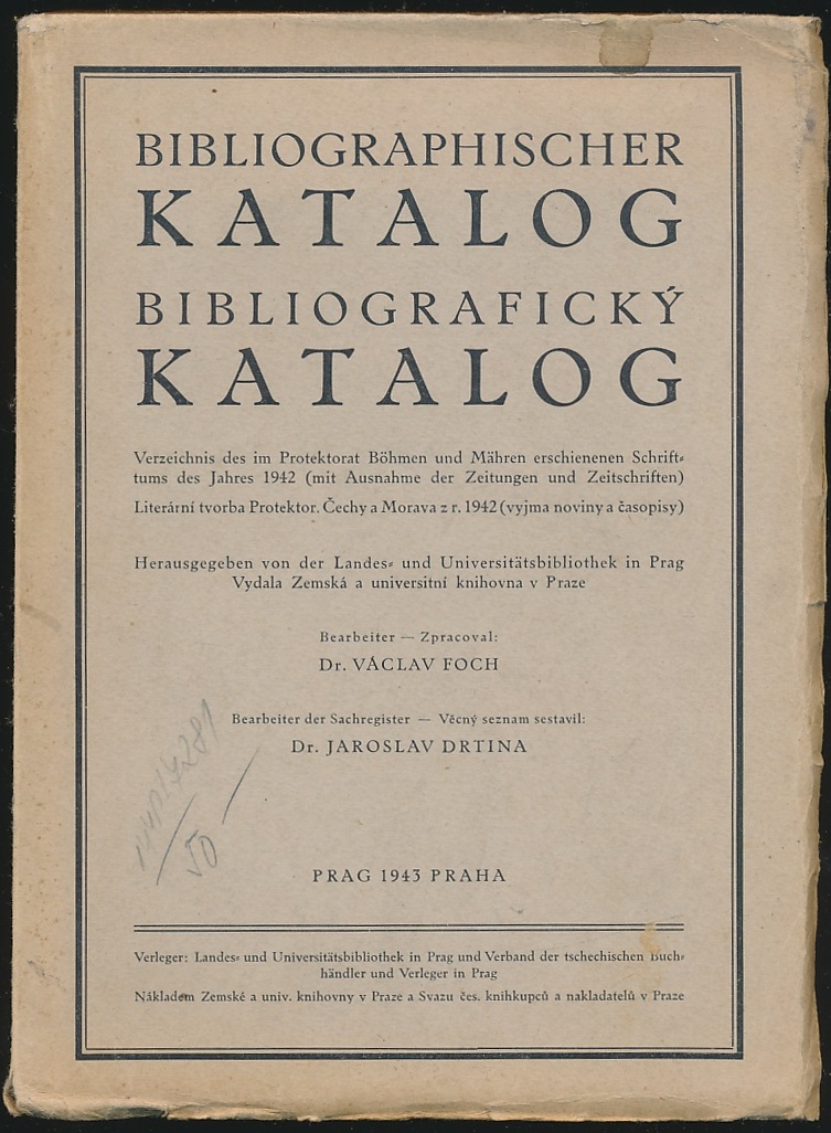 BIBLIOGRAFICKÝ KATALOG – LITERÁRNÍ TVORBA PROTEKTOR ČECHY A MORAVA Z R. 1942 (VYJMA NOVINY A ČASOPISY)