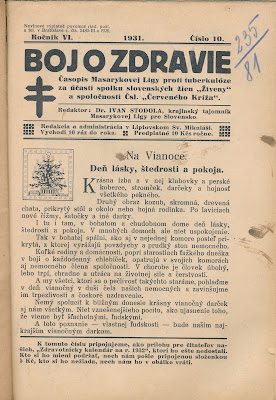 Časopis Masarykovej ligy proti tuberkulóze, za účasti spolku slovenských žien "Živeny" a spoločnosti Čsl. Červeného kríža", Bratislava, 1931